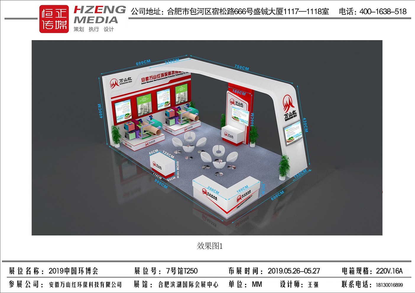 2019年5月28-30日安徽万山红环保科技有限公司参加2019年中国(合肥)国际环保产业博览会展位54平方。